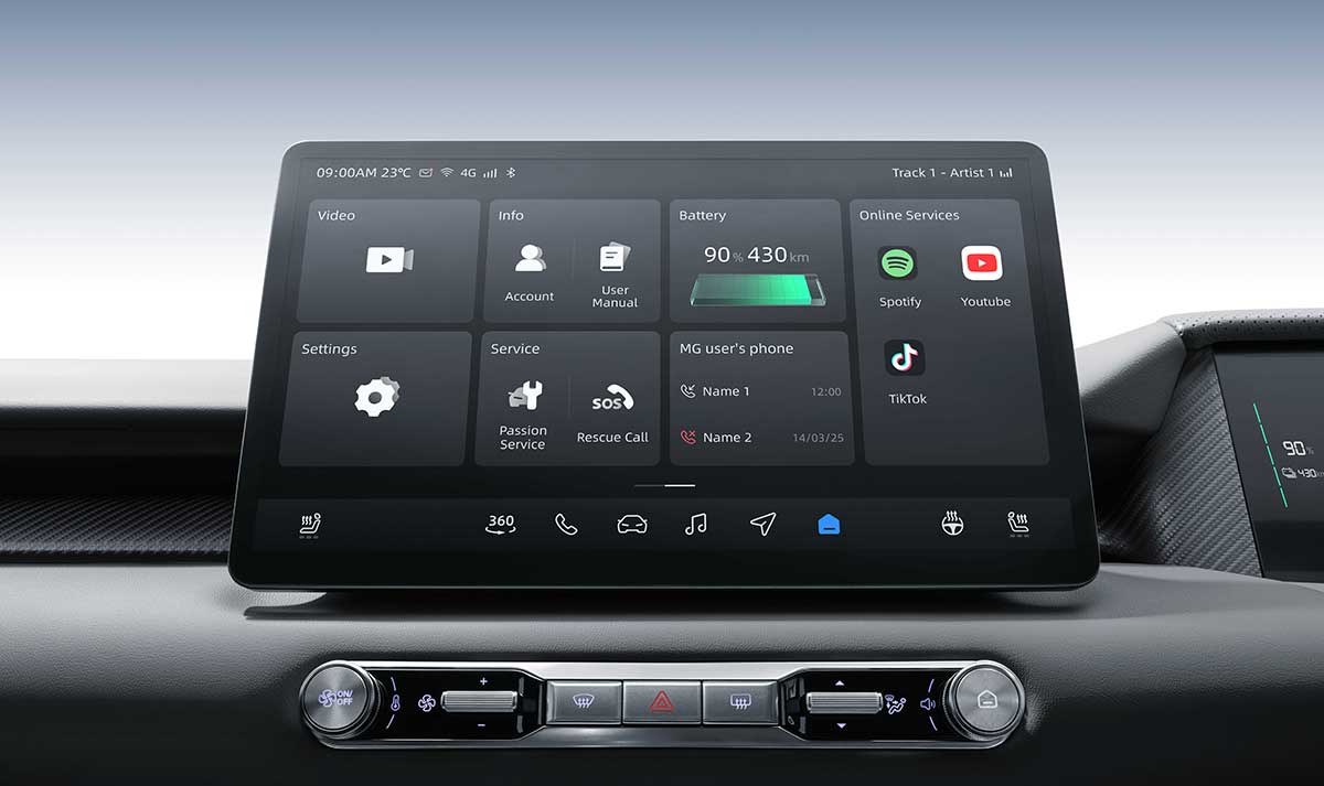 MGS5 EV menawarkan ruang kaki dan kepala yang lega bagi setiap penumpang. Interiornya dirancang lapang dengan sandaran tangan belakang lengkap dengan cup holder, beragam ruang penyimpanan, serta panoramic sunroof elektrik berukuran besar yang membuat perjalanan semakin menyenangkan, ditambah hiburan bawaan seperti YouTube, Spotify, dan TikTok untuk menemani setiap momen di jalan.
